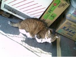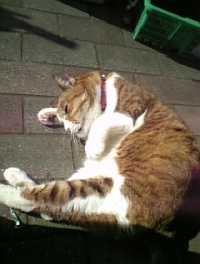 夏の間まったく姿が見えなかった佃のななちゃんに久しぶりにお目にかかりました。秋晴れの昼下がり、店先で熟睡中でした。