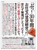 制作メモ■ 「賃貸マンション経営」の訴求はとても難しい作業で、いろいろとアイディアを盛り込んだビジュアルを使ったオーソドックスな広告では、これといった成果をあげることができないでいました。前ページの「漫画手法」は、施主に有利な提案を、営業マンのやりとりのなかで語る具体的なストーリーが功を奏して、毎回数百件の資料請求が継続的にありました。ところが、この漫画の描き手がメジャーデビューしたため、新しい効果的な手法の広告企画が必要になったのです。